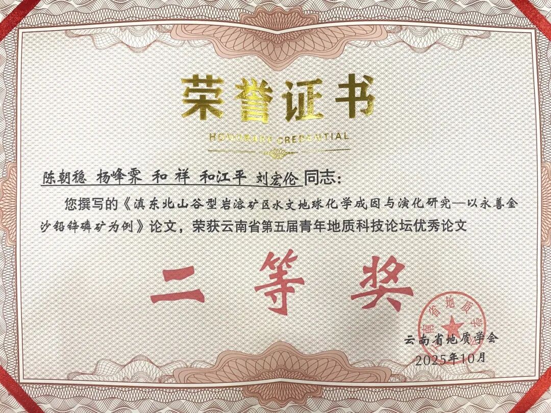 二等奖《滇东北山谷型岩溶矿区水文地球化学成因与演化研究——以永善金沙铅锌磷矿为例》