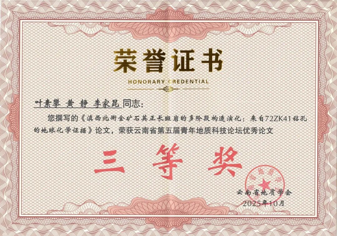 三等奖《滇西北衙金矿石英正长斑岩的多阶段构造演化:来自72ZK41钻孔的地球化学证据》