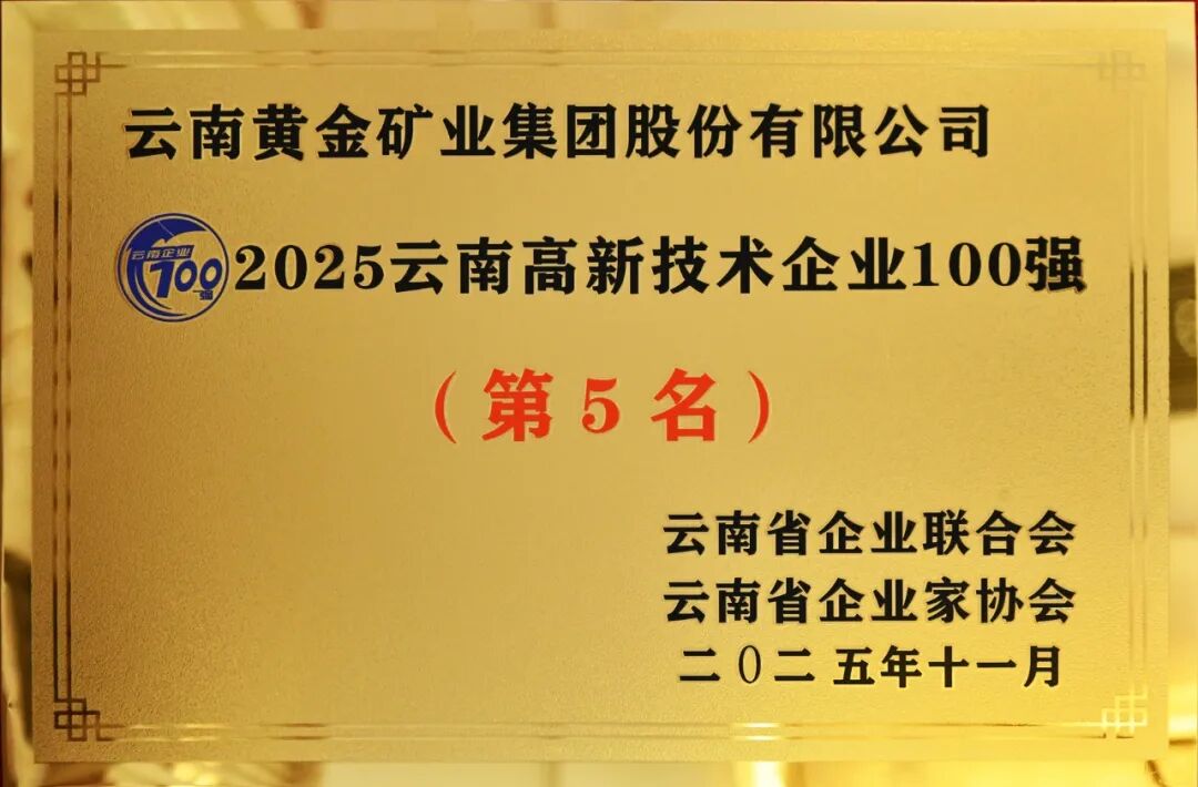 12月6日,2025云南企业100强发布会在云南海埂会堂召开,云南黄金集团荣登“云南企业100强”及“云南高新技术企业100强”双榜单,分别位列第18位及第5位。